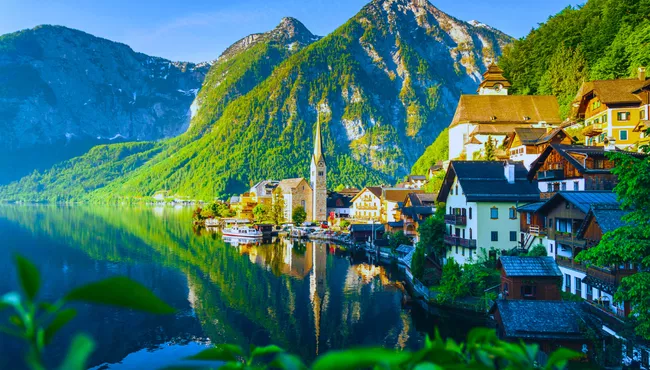 Travel by train to Hallstatt, enjoying time to explore its lakeside setting and alpine scenery. Continue via Bad Ischl, stopping at Café Zauner, then onward to St. Wolfgang and St. Gilgen before returning to Salzburg.