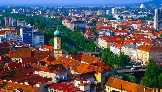 Travel by train to Graz, Austria’s second city. Explore the UNESCO-listed Old Town, climb Schlossberg for panoramic views, and see the iconic Clock Tower. Visit Schloss Eggenberg and the modern Kunsthaus Graz before an evening stroll around Hauptplatz.