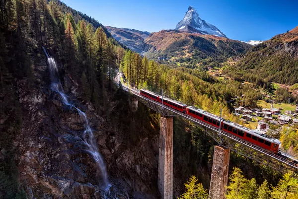 • Scenic train journey to Zermatt, traveling through alpine valleys.