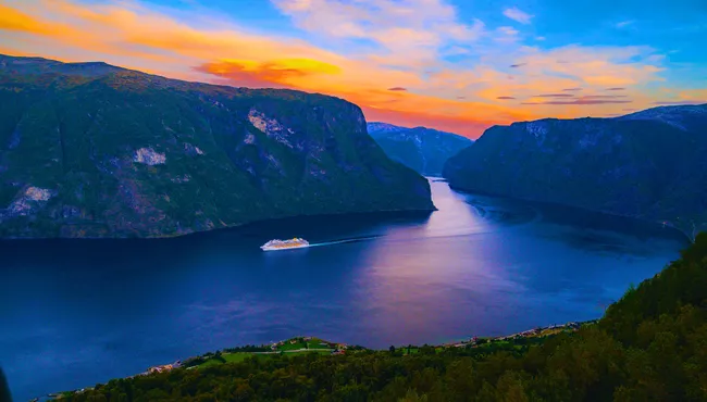 Travel on the classic Norway in a Nutshell route, combining rail, road, and fjord cruise. Journey through mountain valleys and the UNESCO-listed Nærøyfjord before arriving in Flåm, set at the end of a dramatic fjord.