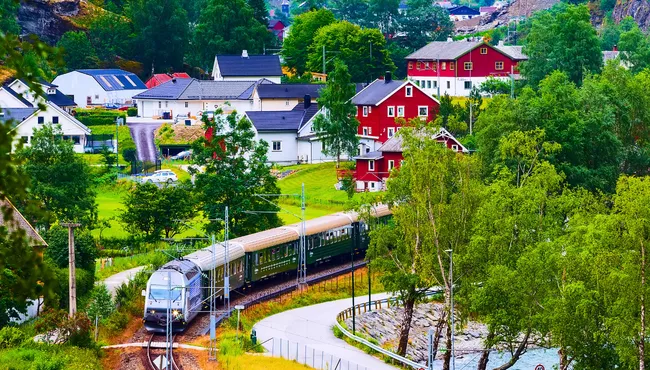 Ride the iconic Flåm Railway, climbing past waterfalls and steep valleys to Myrdal. Continue by rail across mountain plateaus and forests toward Oslo, experiencing the striking contrasts of Norway’s interior landscapes.