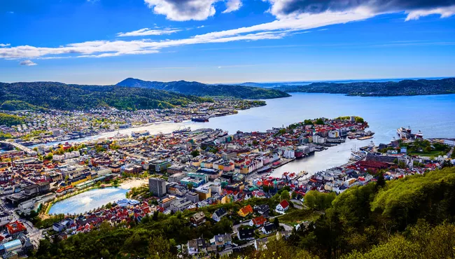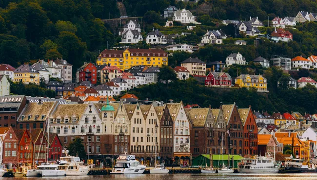 Travel west by train on one of Norway’s most scenic rail routes, crossing forests, valleys, lakes, and mountain landscapes en route to Bergen. On arrival, enjoy a leisurely walk through the historic Bryggen harbour district.