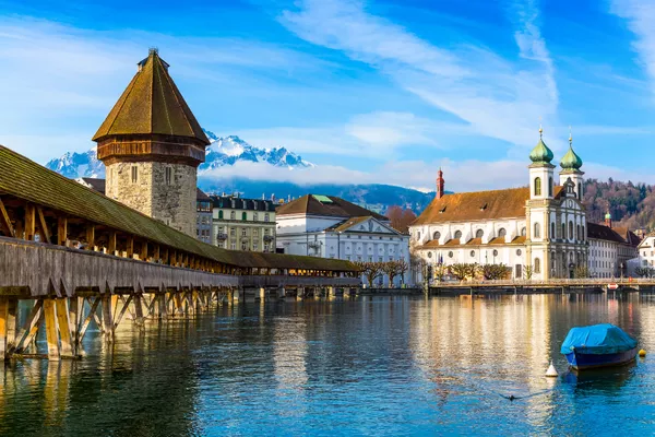 Travel aboard the GoldenPass Express through valleys and alpine scenery before connecting with the Lucerne–Interlaken Express. Pass sparkling lakes and mountain villages en route to Lucerne for an overnight stay.