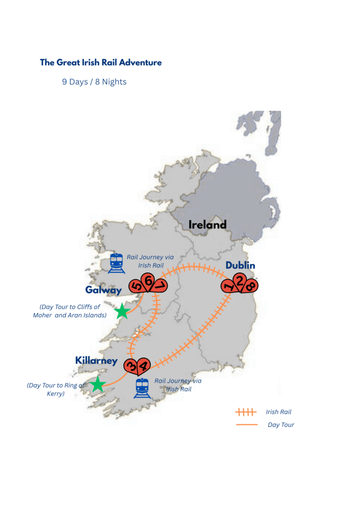 Explore Dublin’s highlights, including the Book of Kells and Kilmainham Gaol, then journey to the Ring of Kerry and Galway for stunning landscapes and Ireland’s rich culture on this 7-night rail adventure.