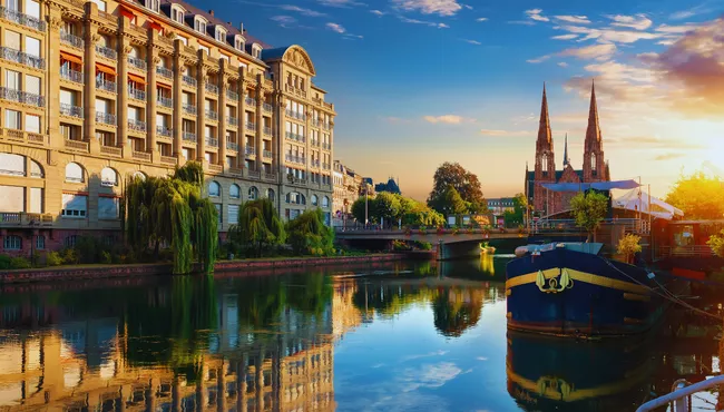 Travel by high-speed train from Paris to Strasbourg. After check-in, explore the historic centre, visiting Strasbourg Cathedral, canals near Ponts Couverts, and the Vauban Dam, where French and German influences blend beautifully.