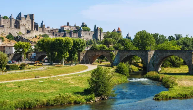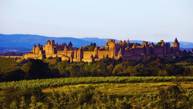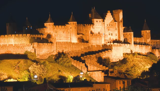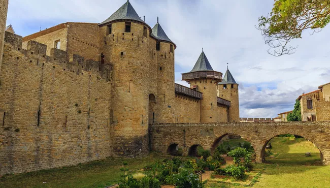 Depart London by Eurostar Plus Class to Paris, then continue First Class by high-speed train to Toulouse before a coach transfer to Carcassonne. Check in near the medieval citadel and enjoy a relaxed evening.